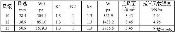 根據(jù)《蘭新鐵路新疆有限公司文件》(新鐵安質(zhì)2010 33號)提供的風(fēng)級鳳速換算表(見表1)及《鐵路橋涵設(shè)計基本規(guī)范》中的4.4.1條確定風(fēng)荷載的大小。