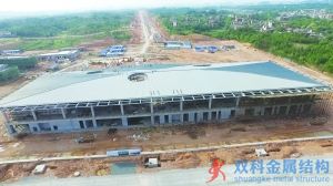 三清山機場項目建設現場指揮部總指揮張劍翔告訴記者:“航站樓主體工程于2014年2月24日正式開工,目前鋼筋混凝土主體工程、墻體砌筑、金屬屋面鋪設等已經完成。玻璃幕墻工程已完成一層全部抗風柱的吊裝、焊接和除銹,正在安裝玻璃幕墻的鋼結構框架。”