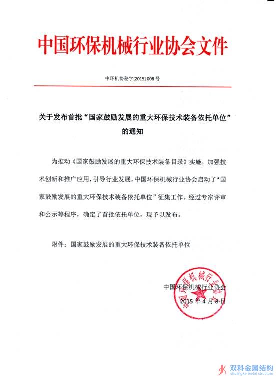 |   2014年12月19日,工信部、科技部、環(huán)境保護(hù)部等三部委聯(lián)合發(fā)布《國家鼓勵發(fā)展的重大環(huán)保技術(shù)裝備目錄(2014年版)》(以下簡稱“2014年版目錄”),公司研發(fā)的“燃?xì)怆姀S低頻噪聲源頭治理成套裝備”列入2014年版目錄第六類“噪聲與振動控制”項下,是2014年版目錄中列示的唯一與噪聲治理有關(guān)的技術(shù)裝備項目。   2014年版目錄發(fā)布后,中國環(huán)保機(jī)械行業(yè)協(xié)會受工信部委托于2015年1月啟動了“國家鼓勵發(fā)展的重大環(huán)保技術(shù)裝備依托單位”征集工作,經(jīng)專家評審和公示等程序,最終確定了148家依托單位,華電重工股份有限公司被認(rèn)定為“燃?xì)怆姀S低頻噪聲源頭治理成套裝備”唯一依托單位。2015年4月8日,工信部在網(wǎng)站上公開發(fā)布了華電重工股份有限公司等148家依托單位名單。   經(jīng)過近四年的研發(fā),公司燃?xì)怆姀S噪聲源頭治理技術(shù)獲得重大突破,并在工程項目上成功實施應(yīng)用。此次被列入國家鼓勵發(fā)展目錄和被認(rèn)定為重大環(huán)保技術(shù)裝備依托單位,充分表明公司研發(fā)的噪音治理技術(shù)裝備獲得了國家層面的認(rèn)可,將對該項技術(shù)裝備的推廣應(yīng)用起到強(qiáng)有力的推動作用。公司通過技術(shù)創(chuàng)新詮釋和踐行了“創(chuàng)造綠色生產(chǎn)、促進(jìn)生態(tài)文明”的企業(yè)理念。